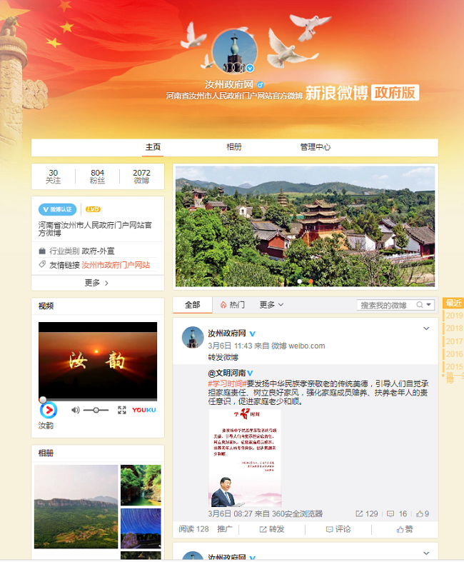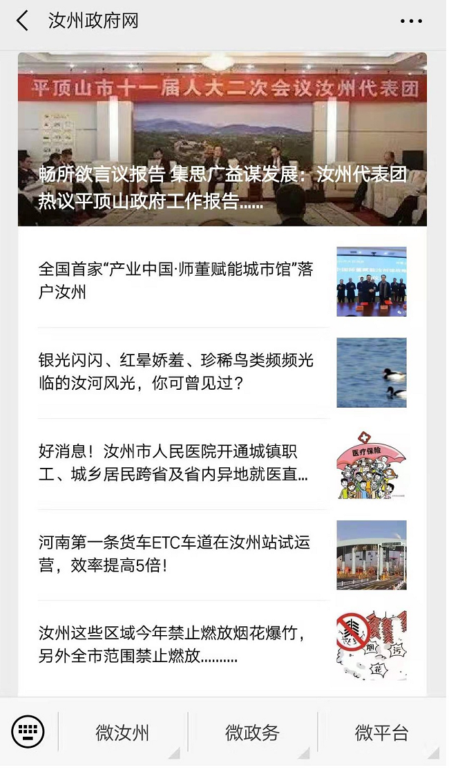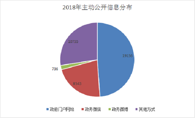 2018年汝州市通过政府门户网站、微信公众号、政务微博、政务APP、电子屏等多种渠道主动公开信息共计31426余条,其中汝州市政府网站发布19156条,政务微信8543条,政务微博736条,其他方式公开10755条。