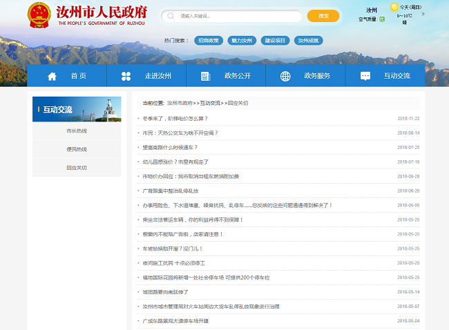 三是积极回应社会关切。2018年,汝州市共办理人民网省长信箱留言100件、人民网市长信箱留言209件、省政府信息公开办转办件2件、平顶山市长信箱留言12件、政府门户网站市长信箱留言549件、其它媒体舆情3件。