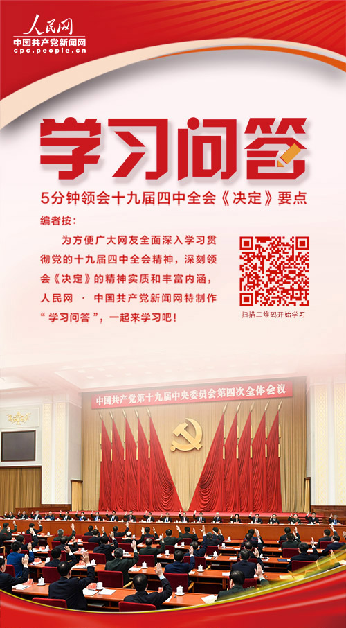 【编者按】为方便广大网友全面深入学习贯彻党的十九届四中全会精神,深刻领会《决定》的精神实质和丰富内涵,人民网·中国共产党新闻网特制作“学习问答”,一起来学习吧!