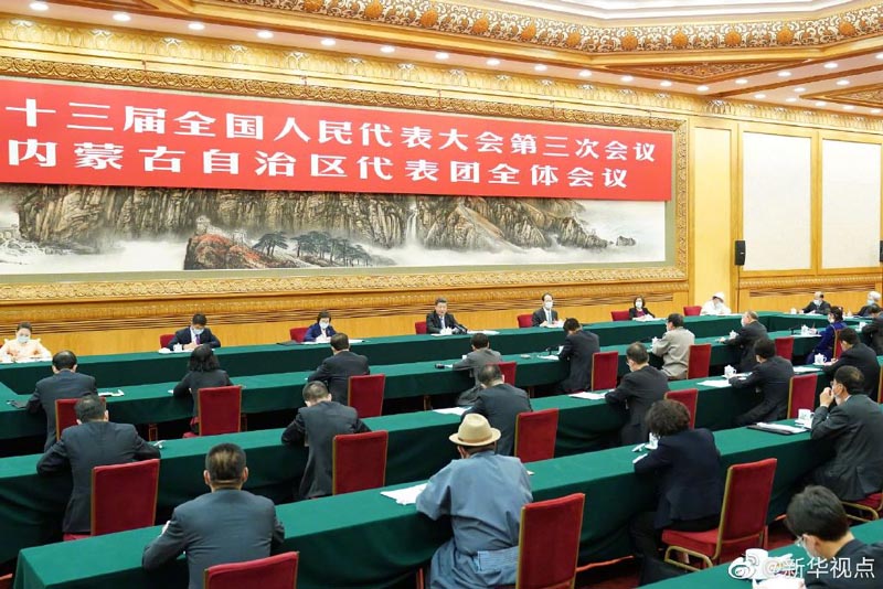 22日下午,中共中央总书记、国家主席、中央军委主席习近平参加他所在的十三届全国人大三次会议内蒙古代表团审议。