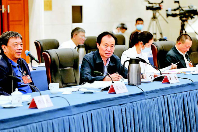 5月27日,河南代表团举行小组会议,继续审议最高人民法院工作报告、最高人民检察院工作报告,审议关于政府工作报告、年度计划、年度预算的三个决议草案。(记者 董亮 杜小伟 摄)