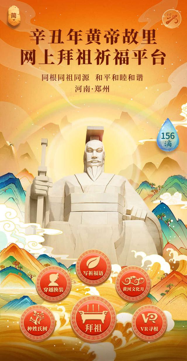 郑州市政协主席张延明表示:“今年,我们对网上拜祖祈福平台进行了全面优化升级,改善用户体验,并赋予网上拜祖祈福平台更多文化内涵。网友可方便运用手机终端参与网上敬献花篮、上香,可以为自己的家乡点亮祈福标志,可以收集黄河水、浇灌姓氏树,可以生成不同风格的换装照发朋友圈,还可以通过VR功能,寻根拜祖。”
