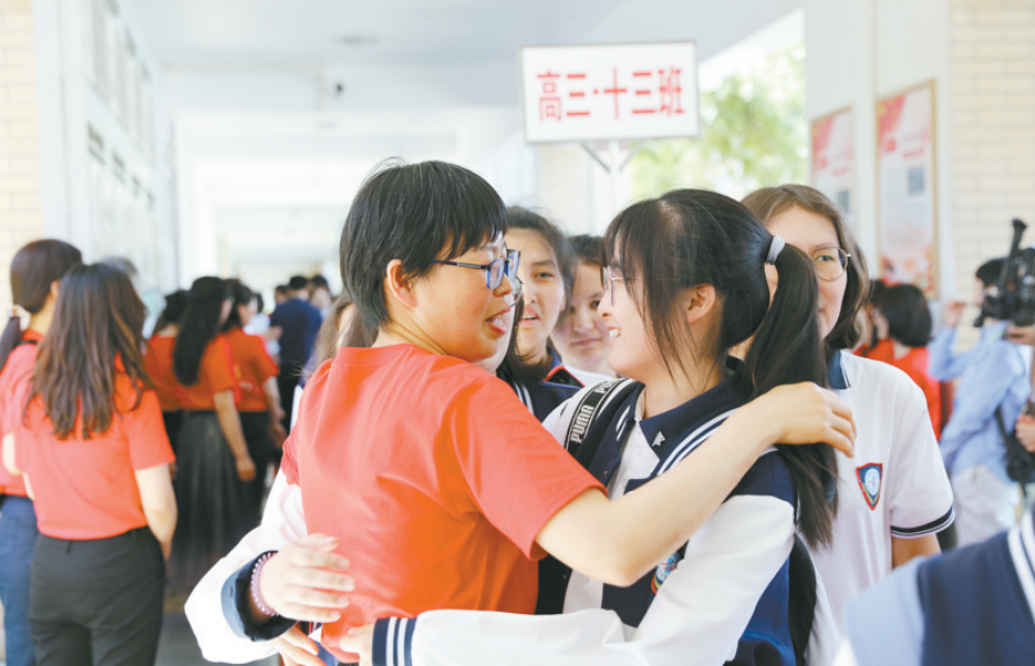 郑州市第十一中学,学生们依依不舍地和老师相拥