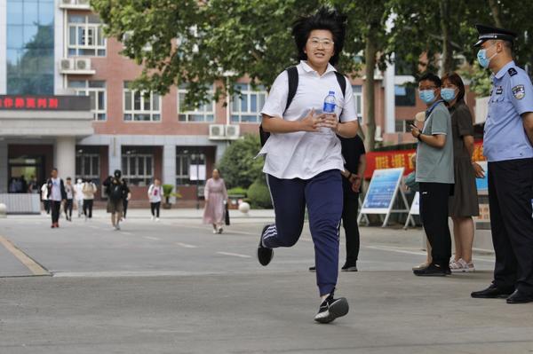 6月8日下午17时,在郑州市第九中学随着英语考试结束的铃声响起,河南2021年高考正式落下帷幕。(记者 贺志泉)