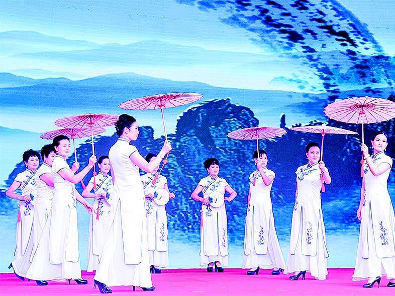 9月22日,三门峡市城乡一体化示范区举办庆祝中国农民丰收节暨“十大乡村振兴带头人”颁奖典礼,禹王路街道办一母同胞10个亲姐妹表演的模特秀成为节会的一大亮点。(东跃 摄)