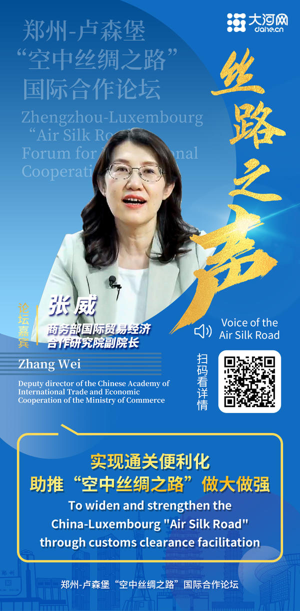 郑州—卢森堡“空中丝绸之路”为不沿海、不靠边的内陆城市深度融入“一带一路”提供了可复制推广的创新模式。推进通关便利化如何助力“空中丝绸之路”做大做强?商务部国际贸易经济合作研究院副院长张威在11月16日郑州—卢森堡“空中丝绸之路”国际合作论坛作主旨发言。