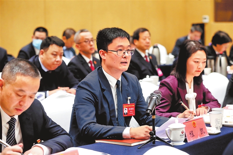 图①②1月30日,出席省十四届人大二次会议的代表在认真审议省人大常委会工作报告和省两院工作报告。(记者 王铮 摄)