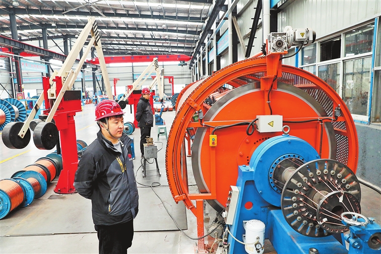 2月23日,位于修武经济技术开发区的河南华东电缆股份有限公司生产车间,机声隆隆,一派繁忙景象。春节假期刚过,企业组织工人加紧生产赶订单,力争实现新春开门红。(宋崇飞 摄)