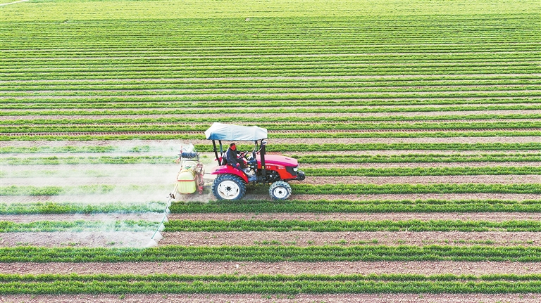 3月9日,在位于许昌市建安区陈曹乡尚庄村的万亩高效节水灌溉示范区,农民正在喷洒农药。当地抢抓农时进行“一喷三防”作业,力争夏粮丰收。牛书培 摄