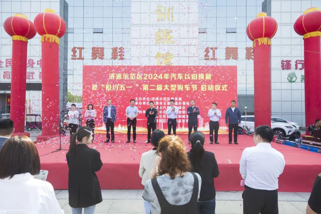 5月1日,济源示范区2024年汽车以旧换新暨“相约五一”第二届大型购车节启动仪式在篮球城西广场举行,示范区管委会党组成员、副市长赵会生同志出席了启动仪式。
