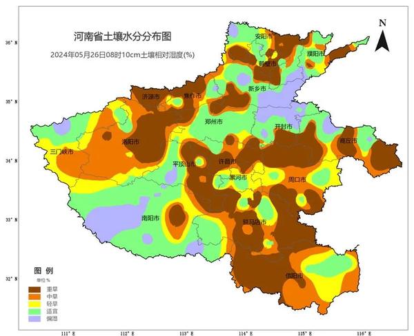气象专家告诉记者,据5月26日8时0-10cm自动土壤水分监测站网数据显示:当前我省缺墒测站比例为66%,适宜站点比例为34%。与5月25日8时(降水前)相比,南阳、新乡、开封、郑州等地墒情明显改善,全省缺墒测站比例减少了12个百分点,对夏播较为有利。