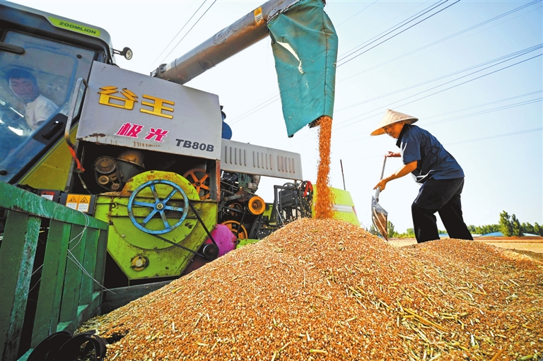 5月27日,开封市鼓楼区仙人庄乡仙人庄村村民在抢收小麦。李俊生 摄