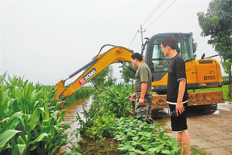 7月17日,商水县郝岗镇程庄村组织机械对积水的农田排涝。吕耀光 摄