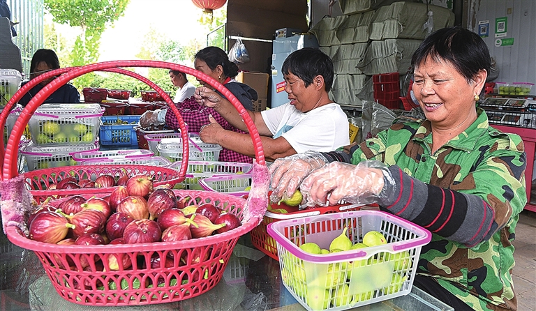 9月16日,孟州市会昌街道堤北头村童心无花果采摘园里,工人们正在分拣、包装刚采摘的无花果。2011年,大学毕业生杨磊返乡种植无花果,目前种植面积已由最初的5亩增加到30亩,年收入达30余万元。记者 杨远高 通讯员 程广霞 摄